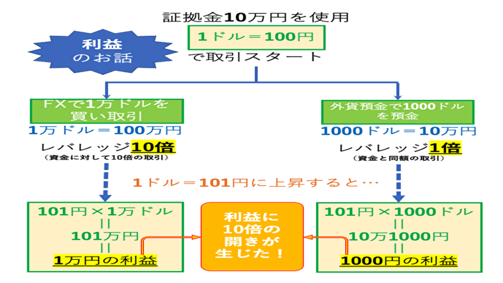 しかし、FXの場合はレバレッジを効かせた取引ができます。